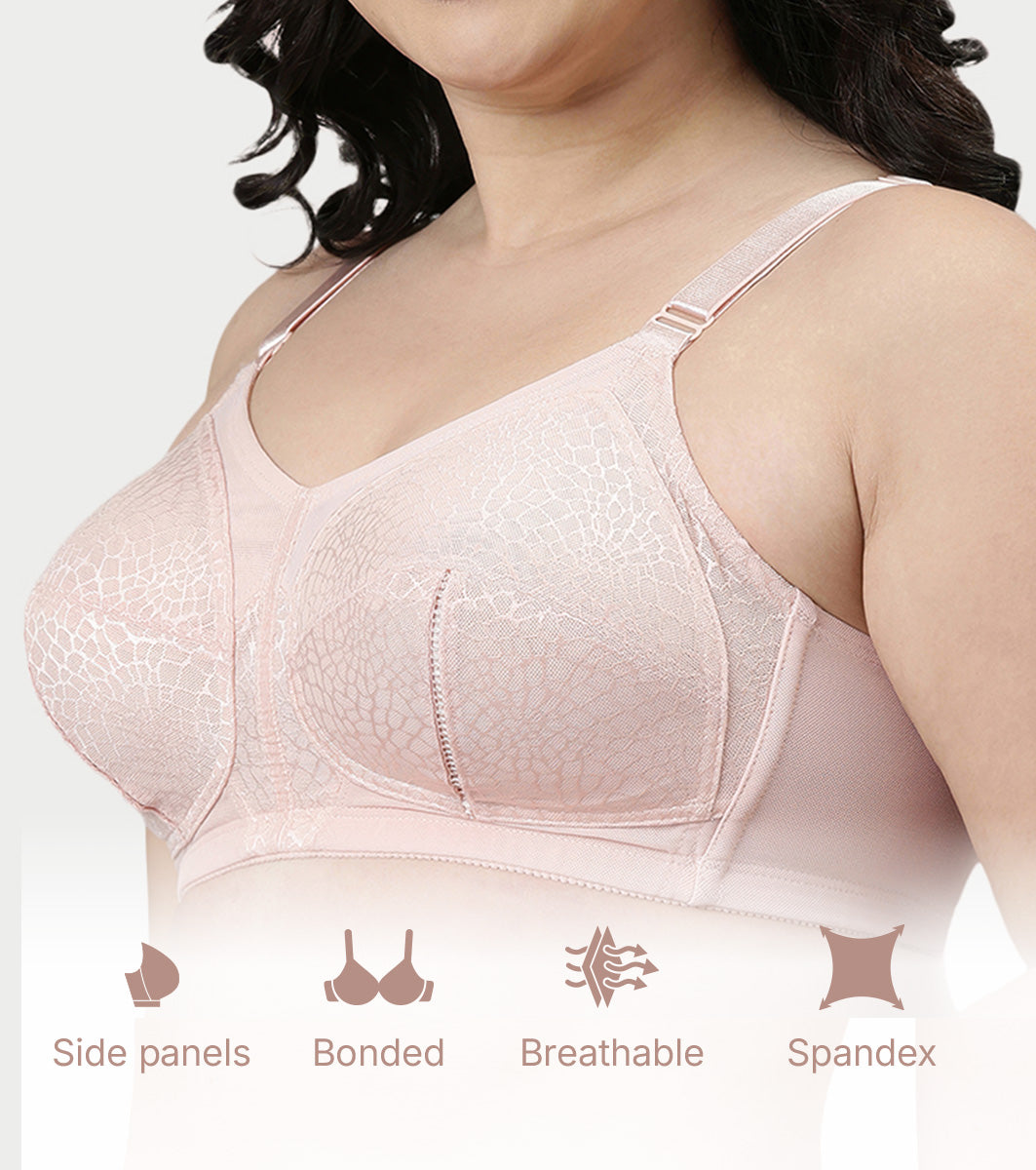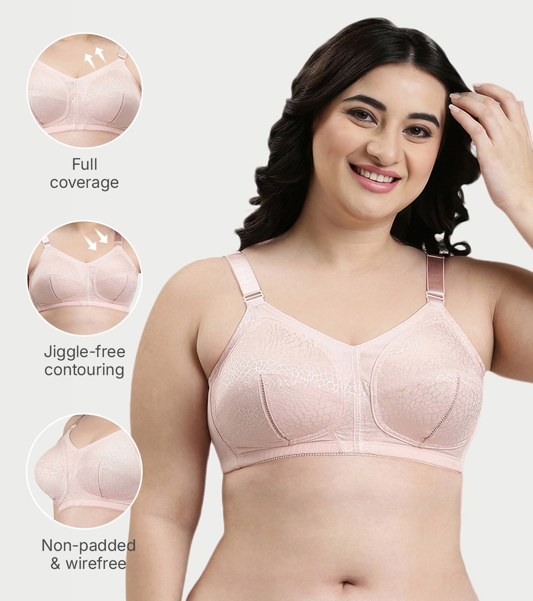 Enamor Innovations Transform M-Frame, Ultimate curve Support, Jiggle control, Women's Bra - Non Padded, Wirefree, Full Coverage - F096 (Available in Plus Sizes) (Pearl)